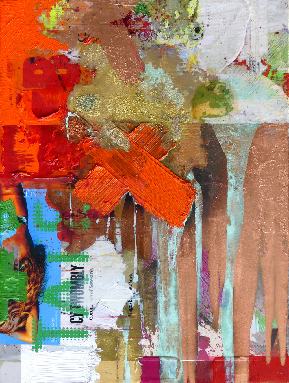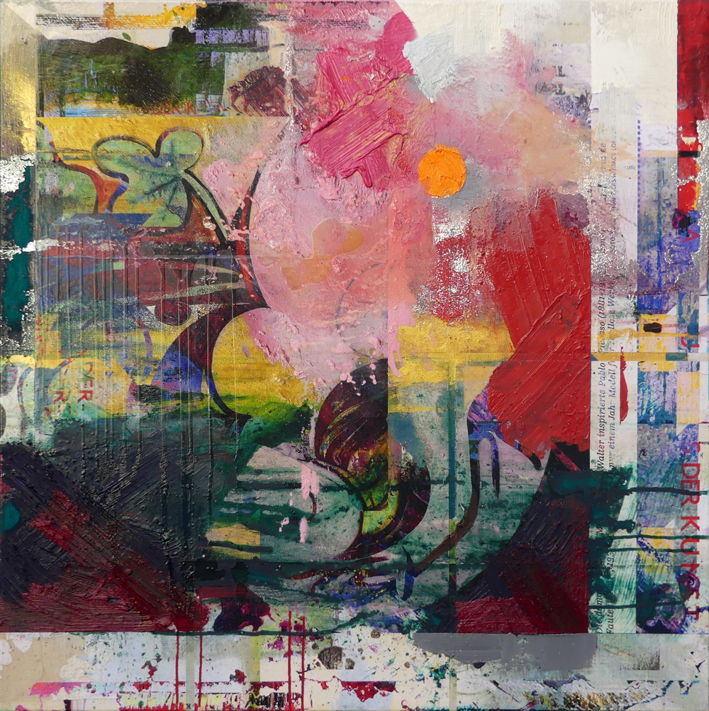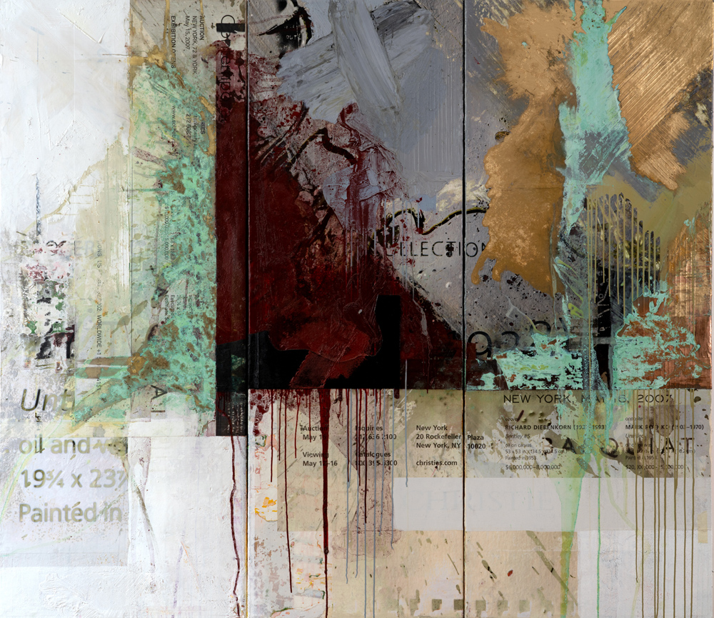 There is no way to explain it all; it’s so much intuitive technicality—a constant interaction of paint, print, fabrics, mediums and effect.