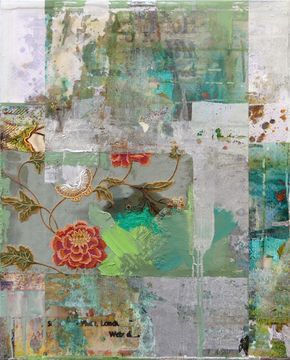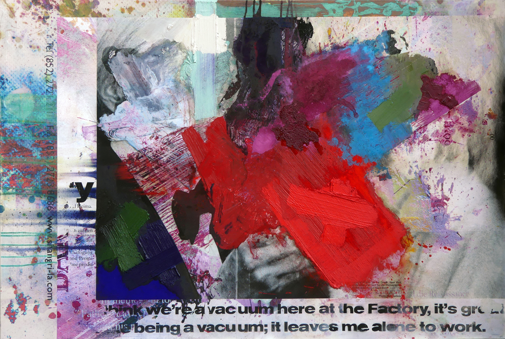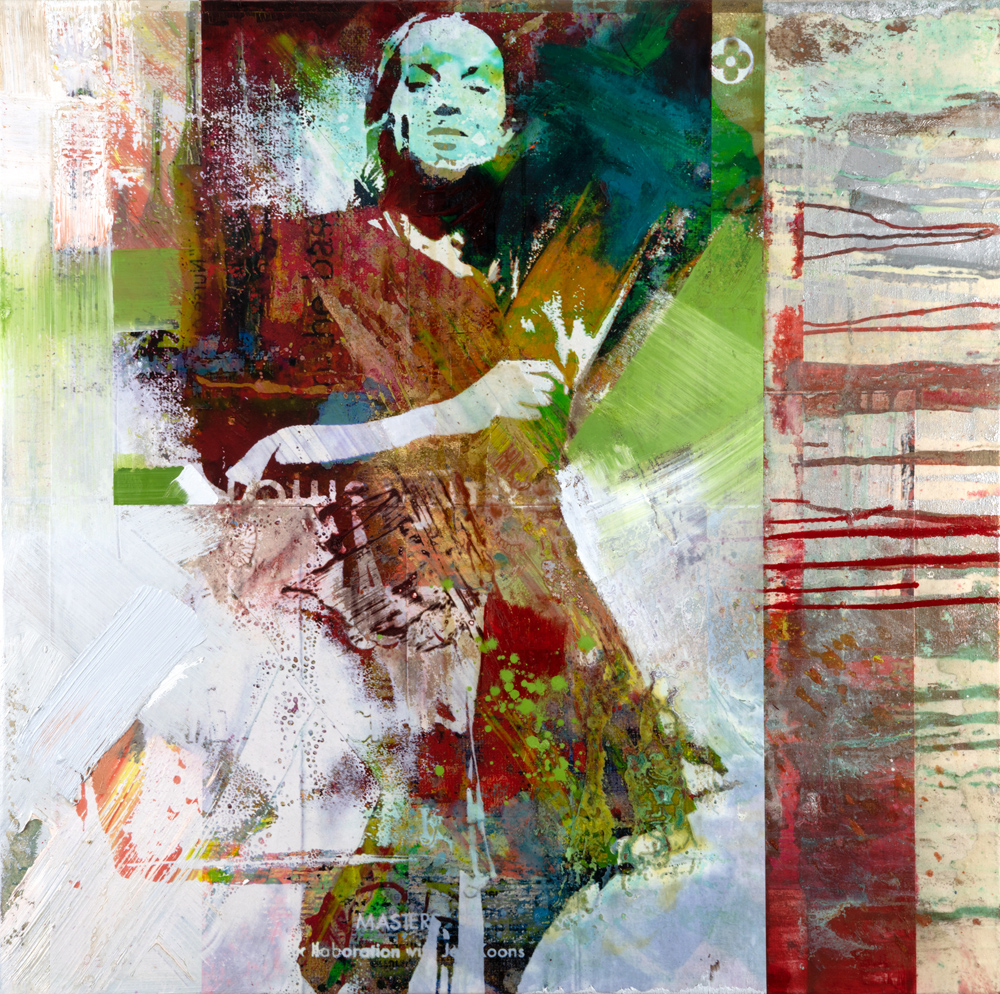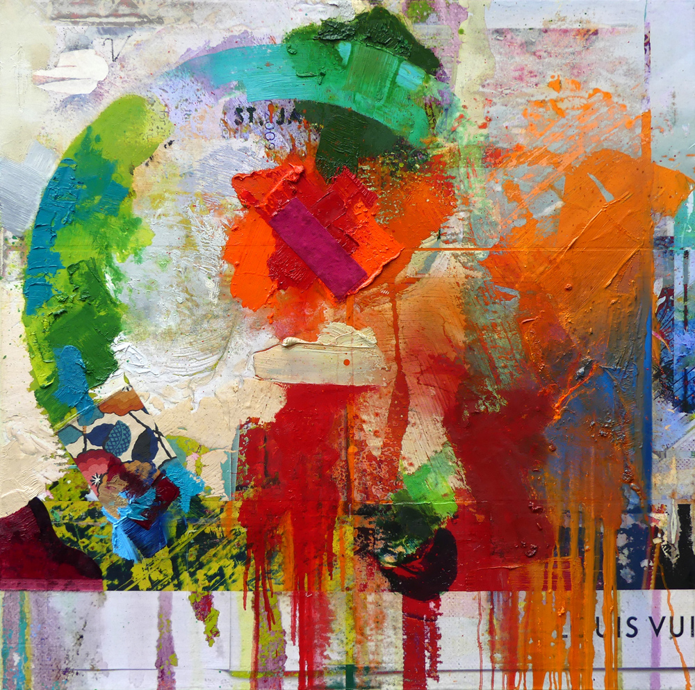 It is a constant juggling of different layers, speeds, and materials. There is no way to explain it all; it’s so much intuitive technicality—a constant interaction of paint, print, fabrics, mediums and effect.