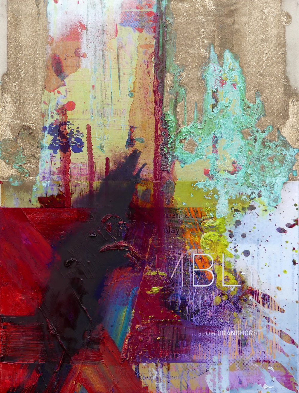 The paintings unfold in an intricate, unpredictable interaction of layers and excess.